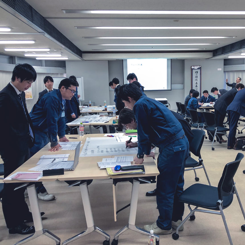 新入社員からチームの主力として活躍できる人材になるために、必要なマインド、ビジネス知識等を身に着ける講義やグループワーク等の研修をとおし、社員の成長をサポートしています。
